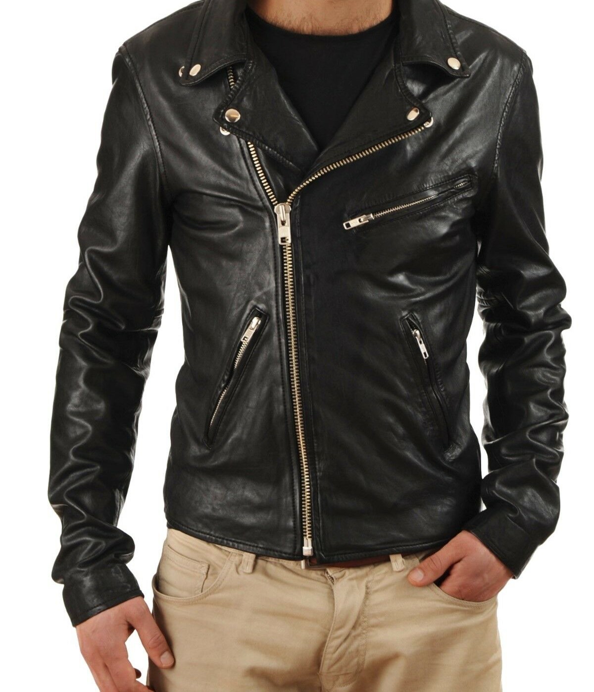 Black Leather Jacket Men Pure Lambskin Biker Motorcycle
