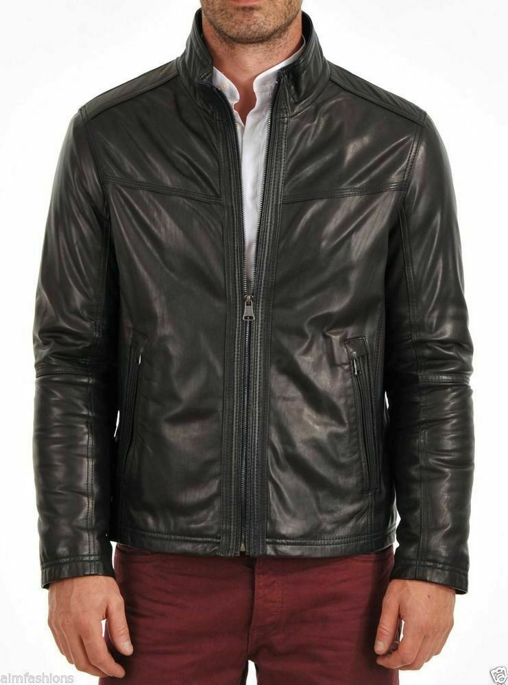 Mens Leather Jacket Motorcycle Biker Slim Fit Real Soft Pure Lambskit