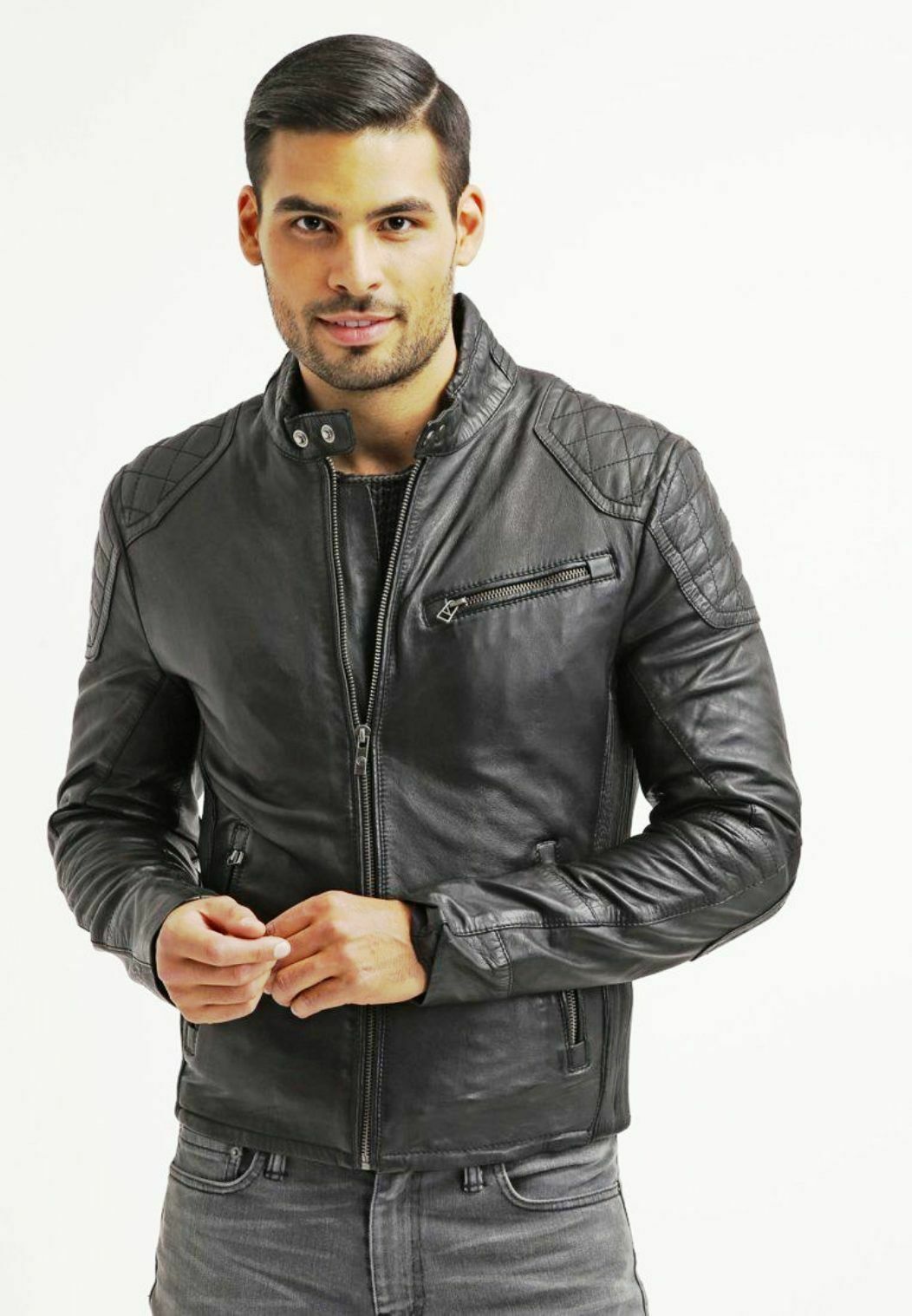 Men Black Leather Jacket Biker Motorcycle Cafe Racer Soft Lambskin Zipper Short