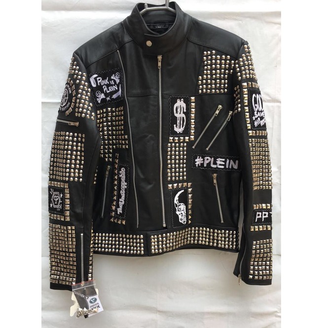 Handmade Black Color Biker Jackets, Real Leather Studded Jackets For Mens