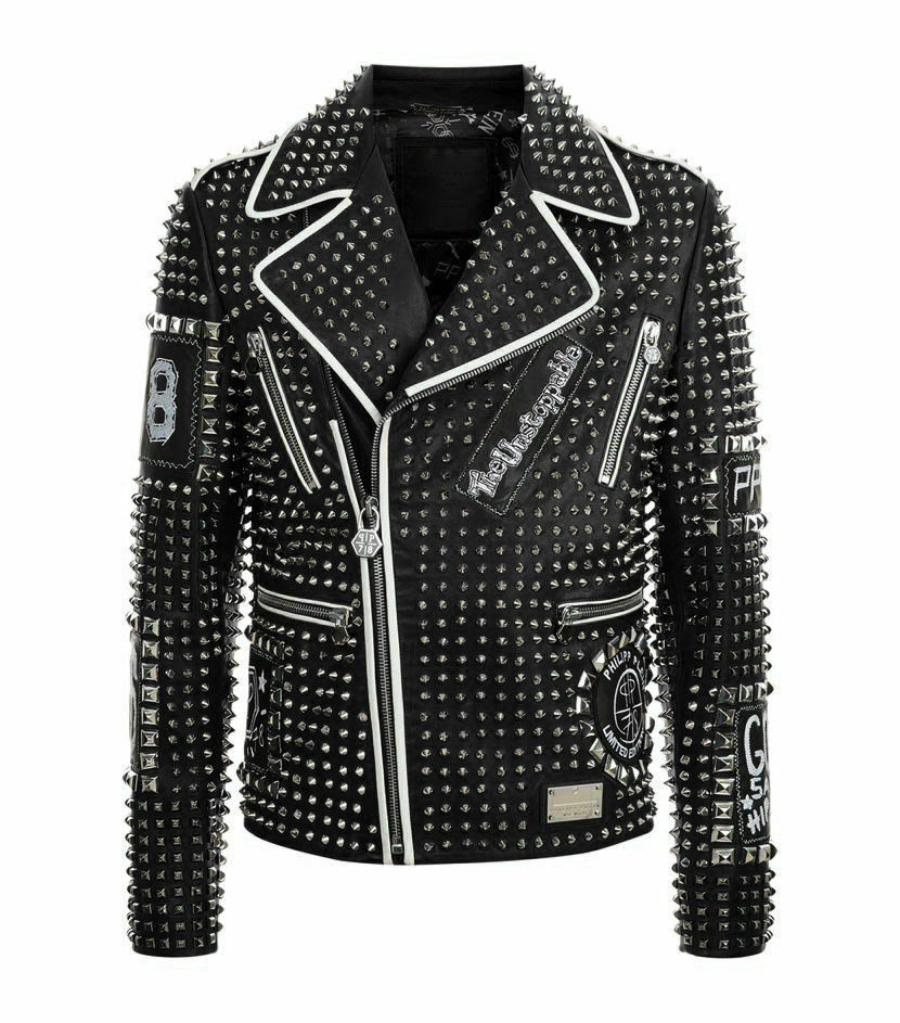 Mens Fashion Jacket Handmade Black Genuine Leather Punk Style Studded Jacket New