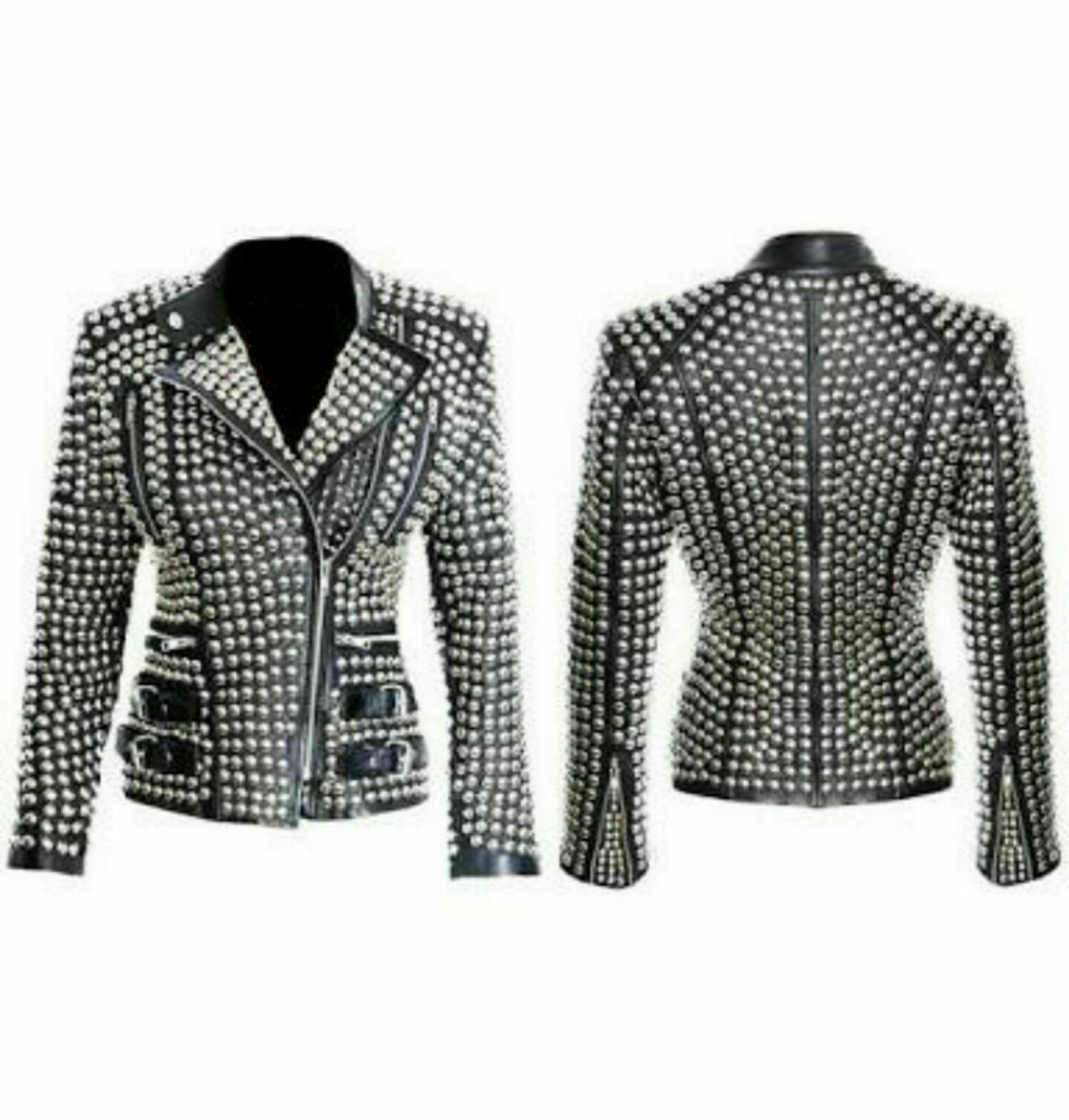 New Handmade Women's Black Fashion Studded Punk Style Leather Jacket