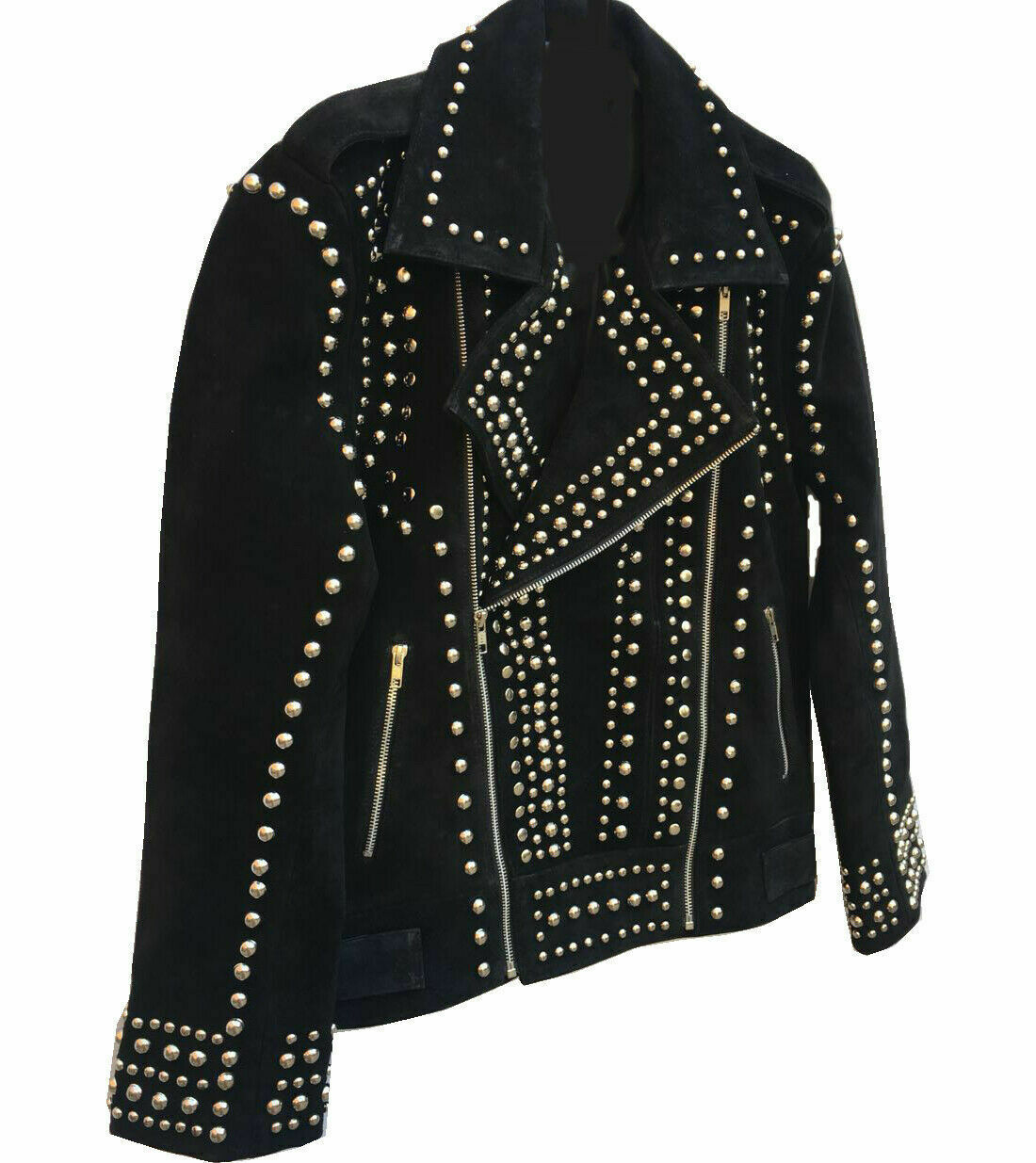 New Handmade Men's Black Fashion Studded Punk Style Suede Jacket