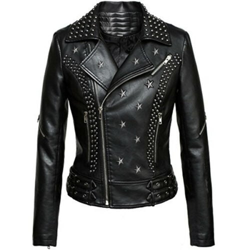 Men's Handmade Sliver Studded Leather Jacket