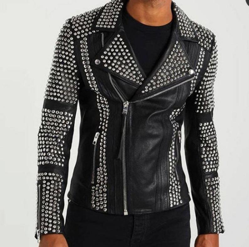 Handmade Men's Black Studded Punk Style Fashion Leather Jacket