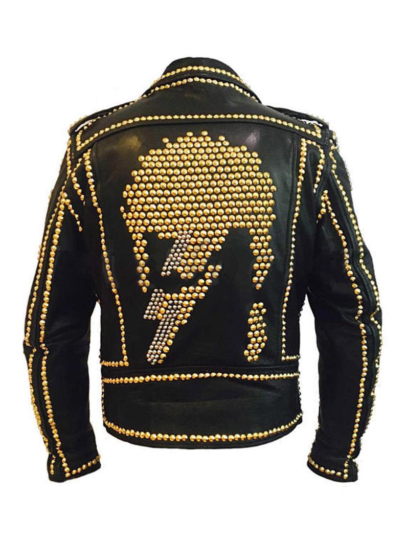 Rockers Mens Full Brown Punk Silver Long Spiked Studded Leather Brando Jacket