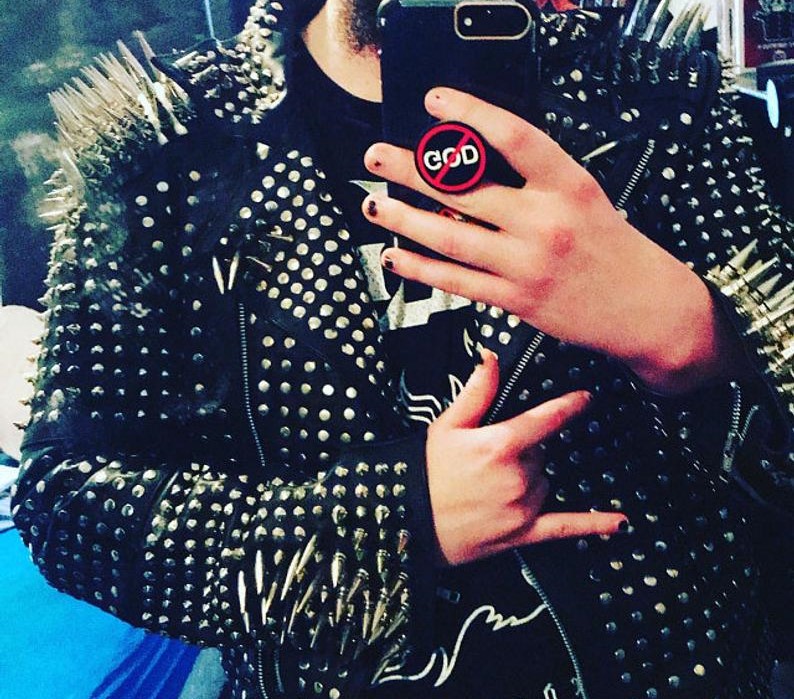Rockers Men's Full Black Steam Punk Silver Spiked Gothic Studded Leather Brando Jacket