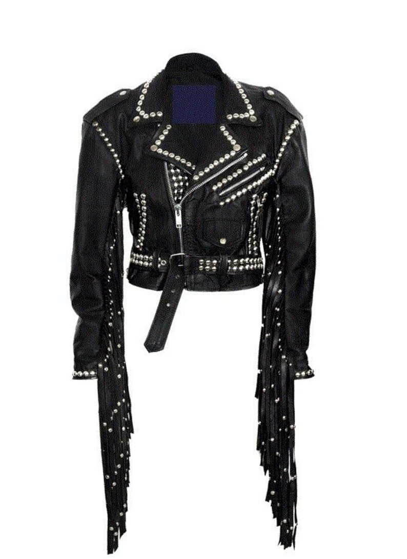 Men Black Silver Studded Brando Biker Cowhide Leather Jacket