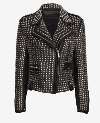 Women All over sliver studded Moto Jacket, Women's leather Fashion moto Jacket