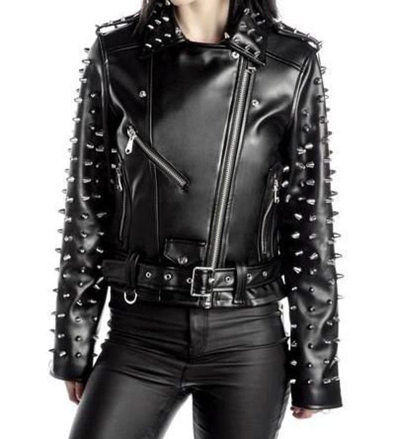 Women Black Leather Studded Biker Jacket, Studded Jacket, Biker Leather Jacket