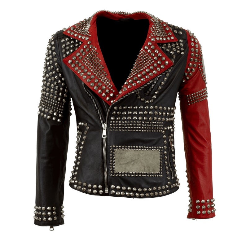 Handmade Women Multicolor Leather Jacket Rock Steam Punk Studded Biker Silver Studs Spiked Jacket