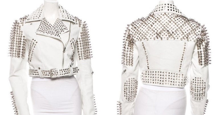 Handmade White Studded Leather Jacket Women Customized Made to Order Women's Silver Studded Genuine Leather Jacket