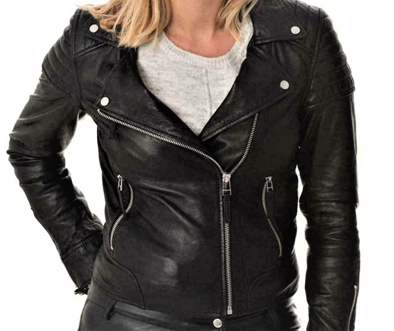Women Leather Jacket Genuine Lambskin Pure Leather Bomber Biker Jacket