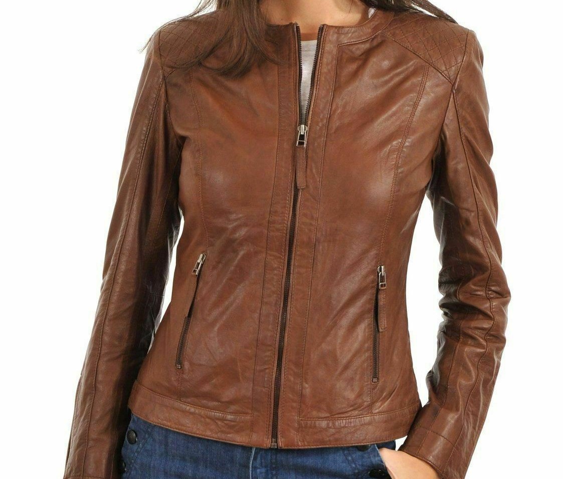 Womens Leather Jacket Motorcycle Biker New Real Lambskin Jacket