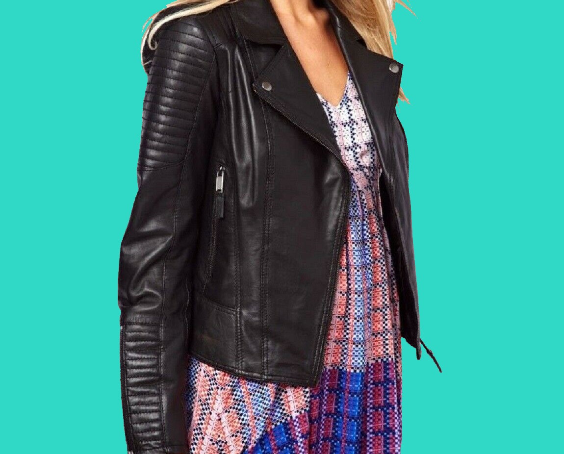 100% New Women Genuine Lambskin Leather Motorcycle Bomber Leather Jacket