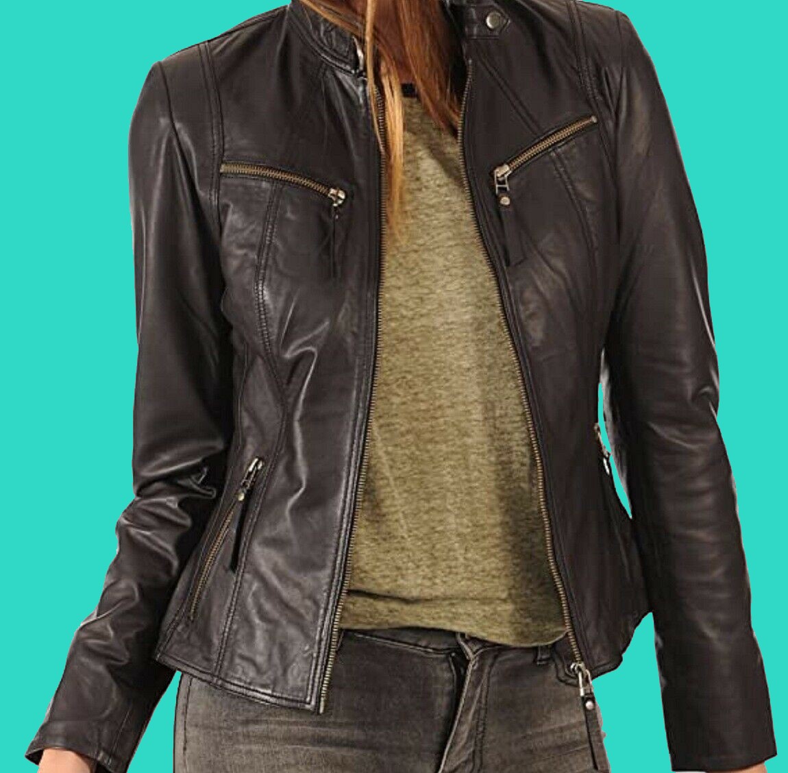 New Fashion Style Women's Lambskin Leather Bomber Biker Jacket
