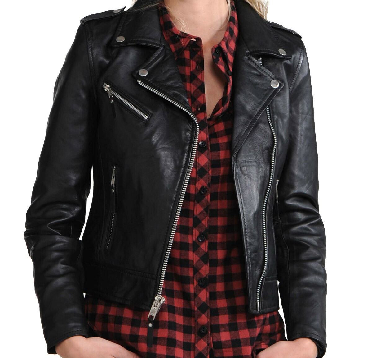 100% New Genuine Leather Lambskin Women Biker Motorcycle Jacket Ladies