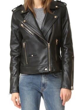 Leather Jacket Women Black Biker Moto Lambskin