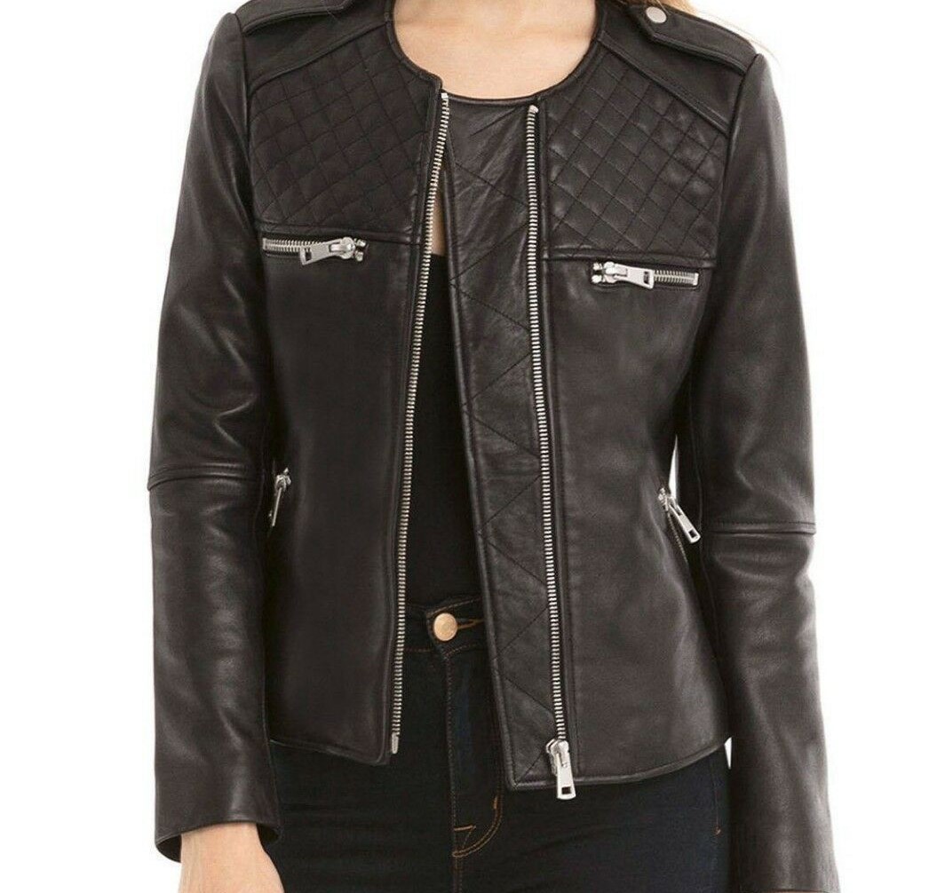 Black Leather Jacket Women Slim Fit Biker Motorcycle Lambskin