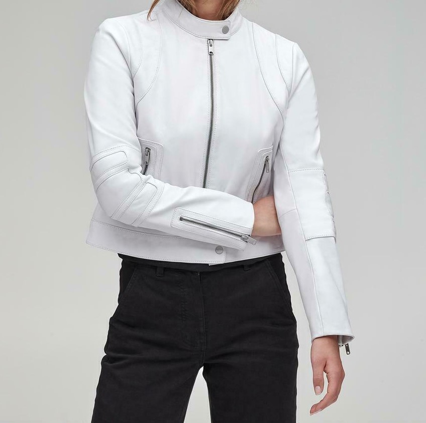 White Leather Jacket Women Biker Moto Pure Lambskin
