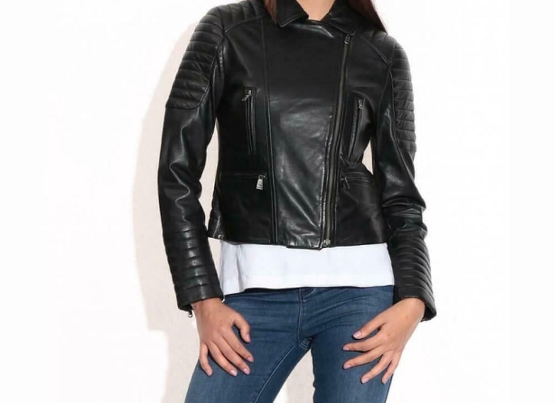 Black Leather Jacket Women Biker Moto Pure Lambskin Slim