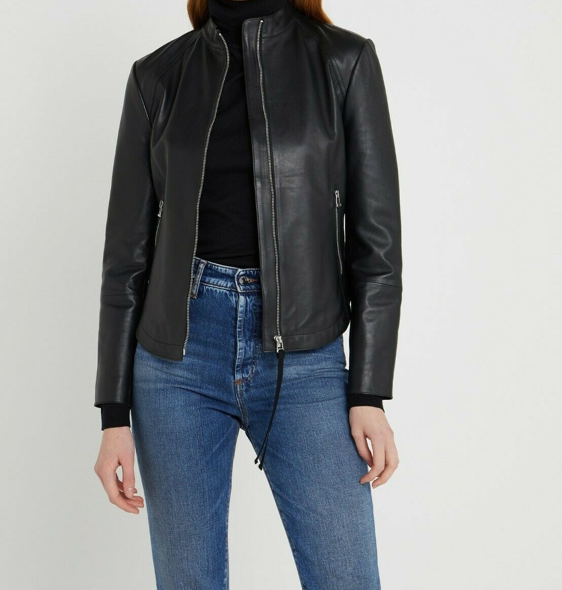 Black Leather Jacket Women Biker Moto Pure Lambskin