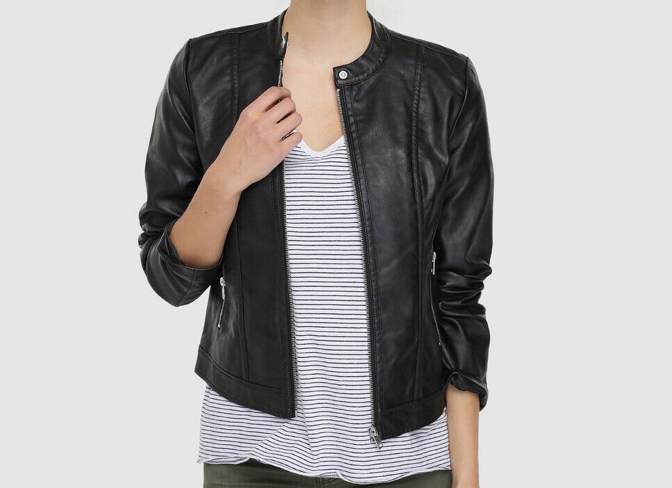 Leather Jacket Women Black Biker Motorcycle Pure Lambskin