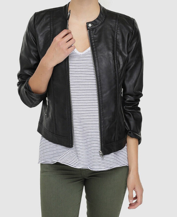 Leather Jacket Women Black Biker Motorcycle Pure Lambskin