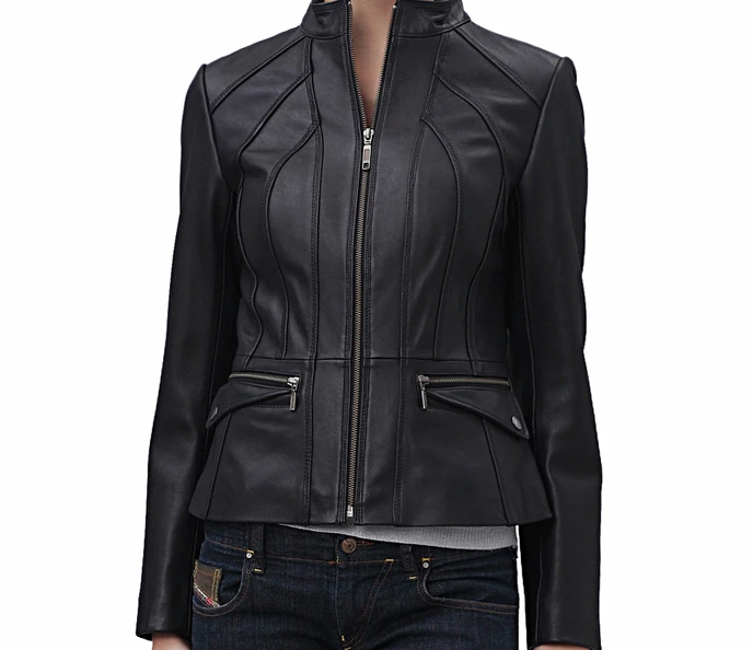 Leather Jacket Women Black Biker Moto Lambskin
