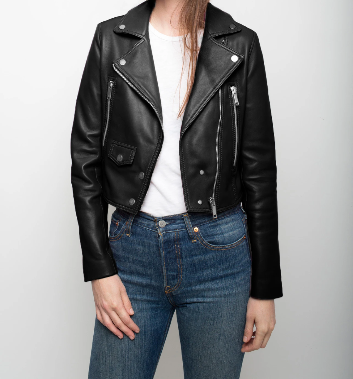 Women Leather Jacket Black Biker Motorcycle Lambskin
