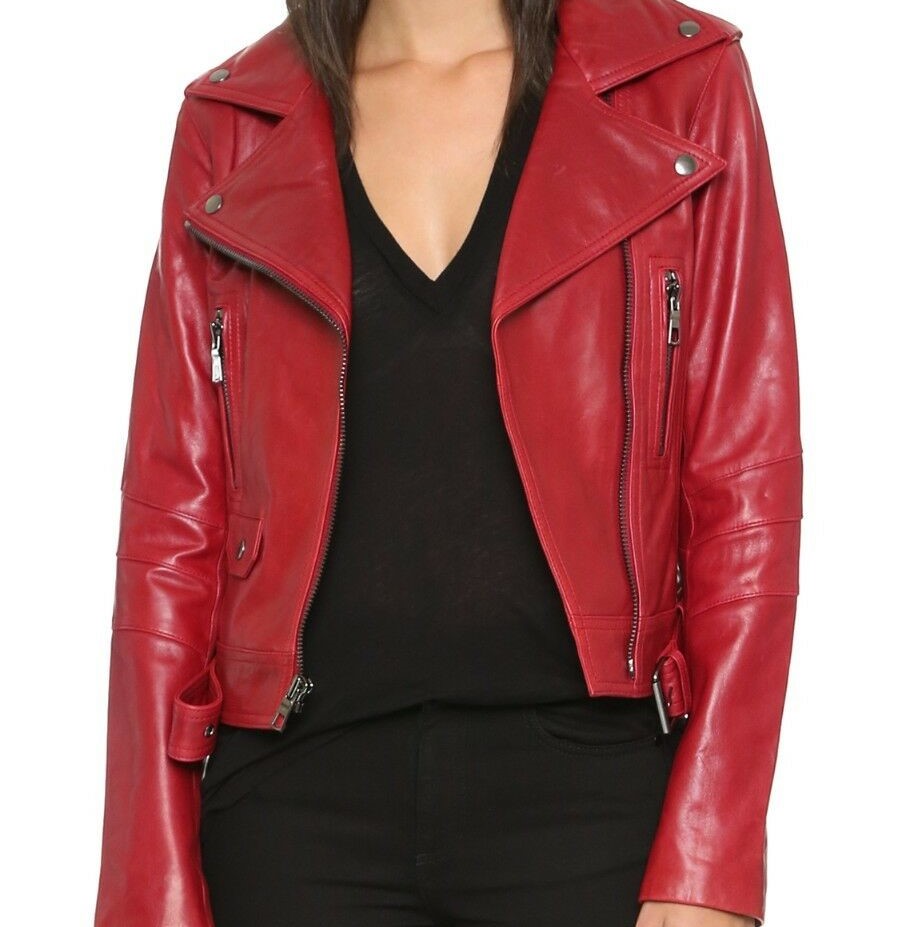 Womens Red Leather Jacket Biker Motorcycle Genuine Lambskin