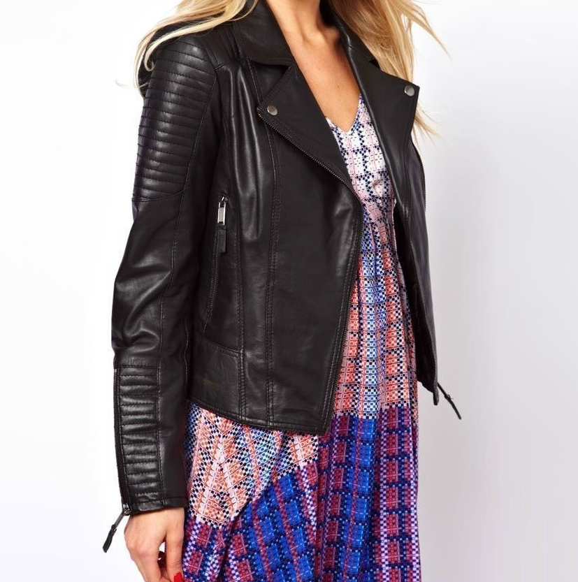 Womens Black Biker Leather Jacket Motorcycle Genuine Lambskin
