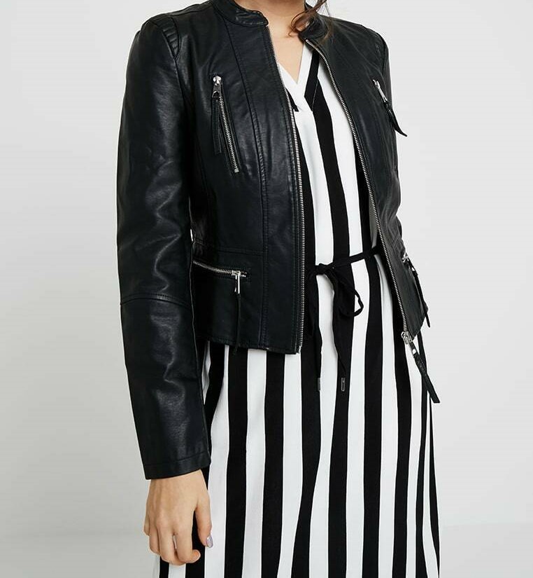 Womens Black Leather Jacket Biker Motorcycle Genuine Lambskin