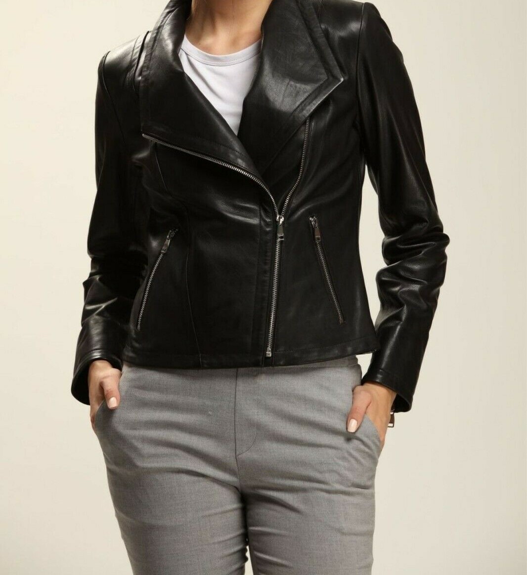 Women Leather Jacket Black Biker Moto Pure Pure Lambskin