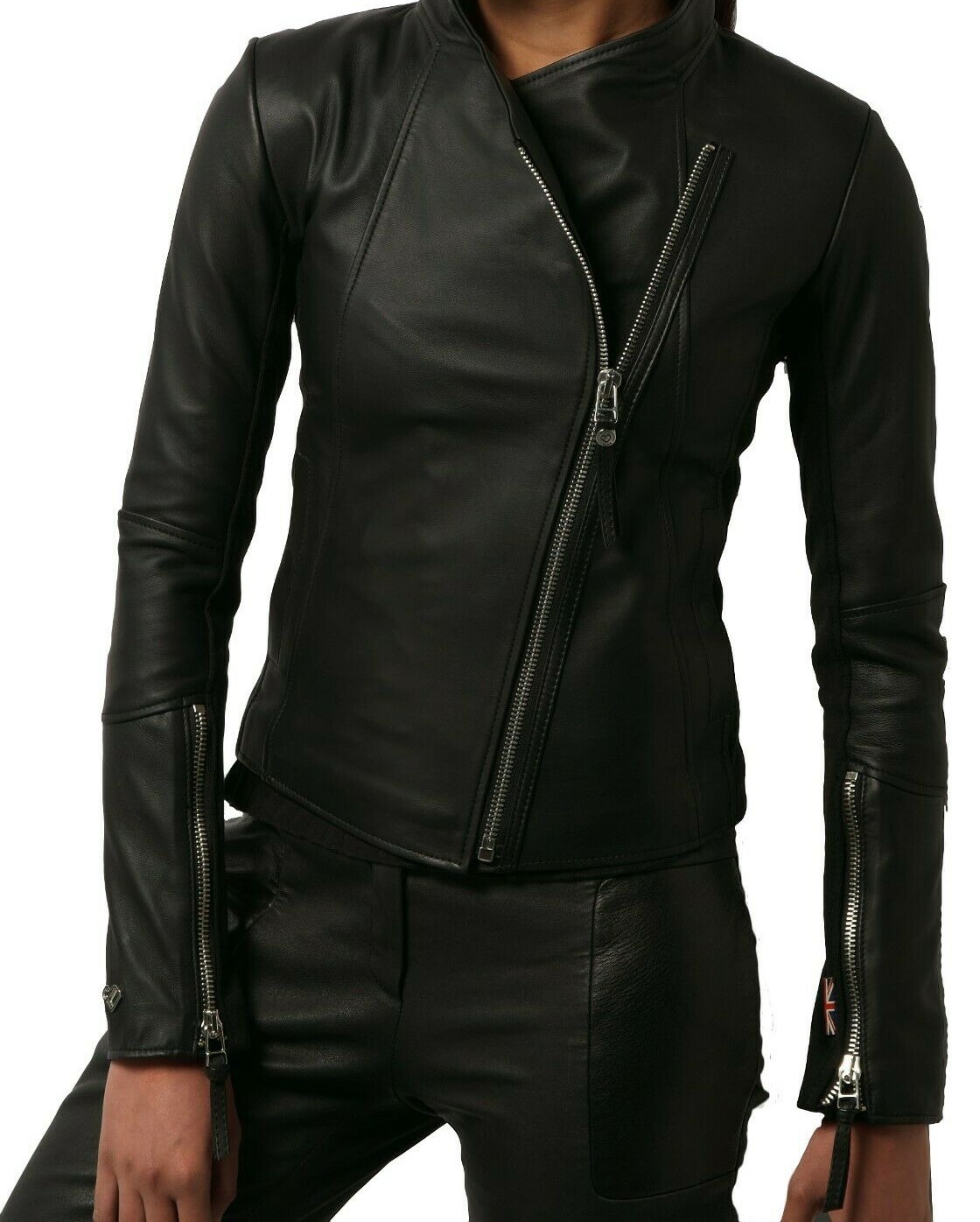Black Leather Jacket Women Biker Motorcycle Pure Lambskin