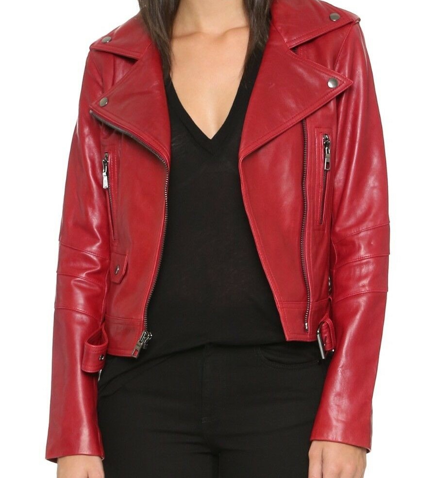 Womens Red Leather Jacket Biker Motorcycle Genuine Lambskin