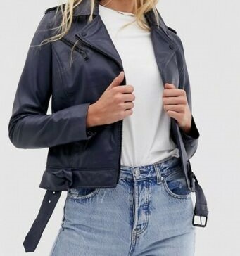 Blue Leather Jacket for Women Pure Lambskin Biker