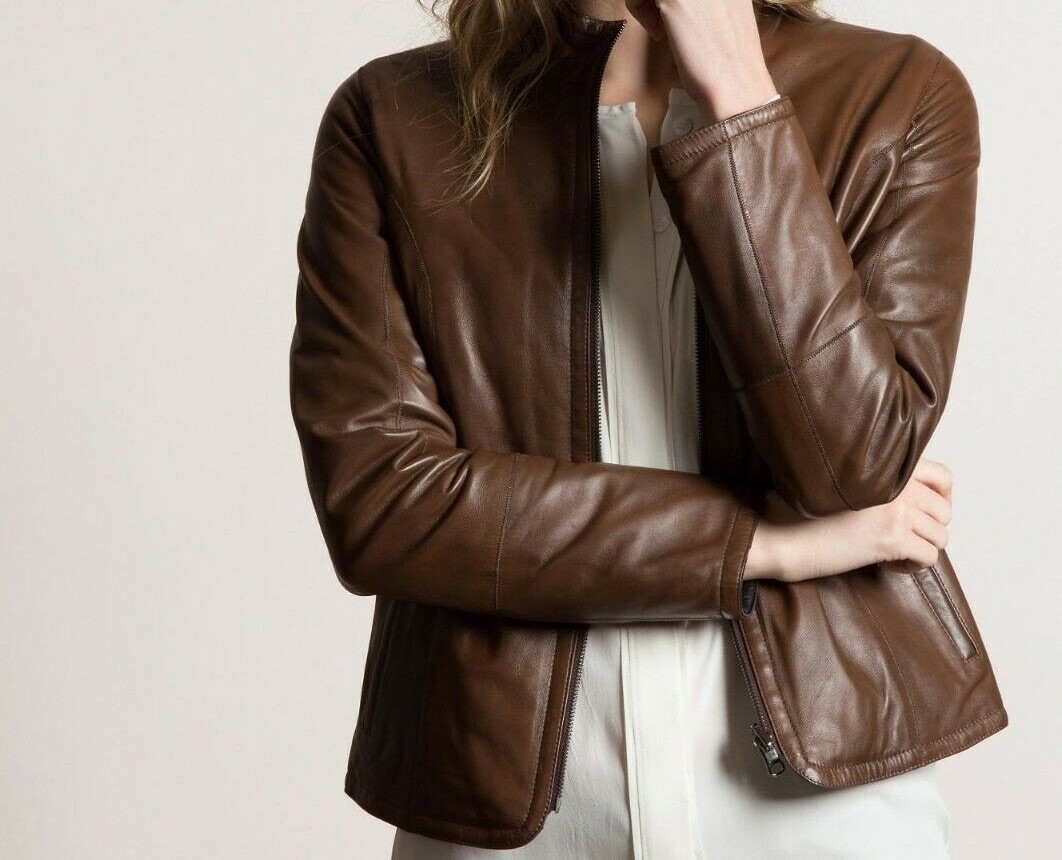Leather Jacket For women Brown Biker Motorcycle Real Lambskin Leather