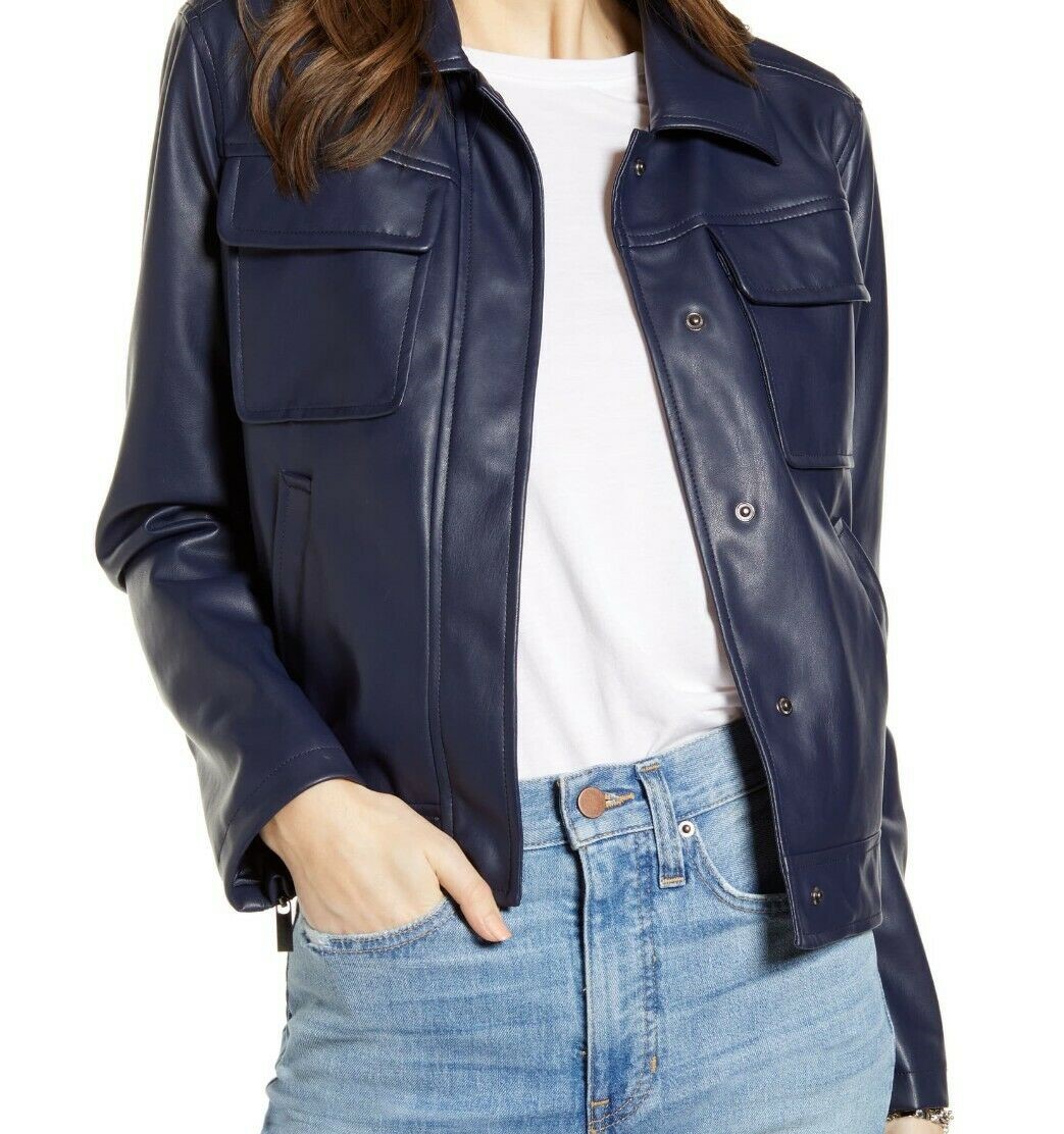 Women Leather Jacket Blue Biker Motorcycle Real Lambskin Leather