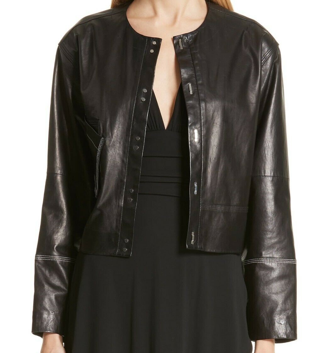 Black Leather Jacket women Biker Motorcycle 100% Real Lambskin Leather
