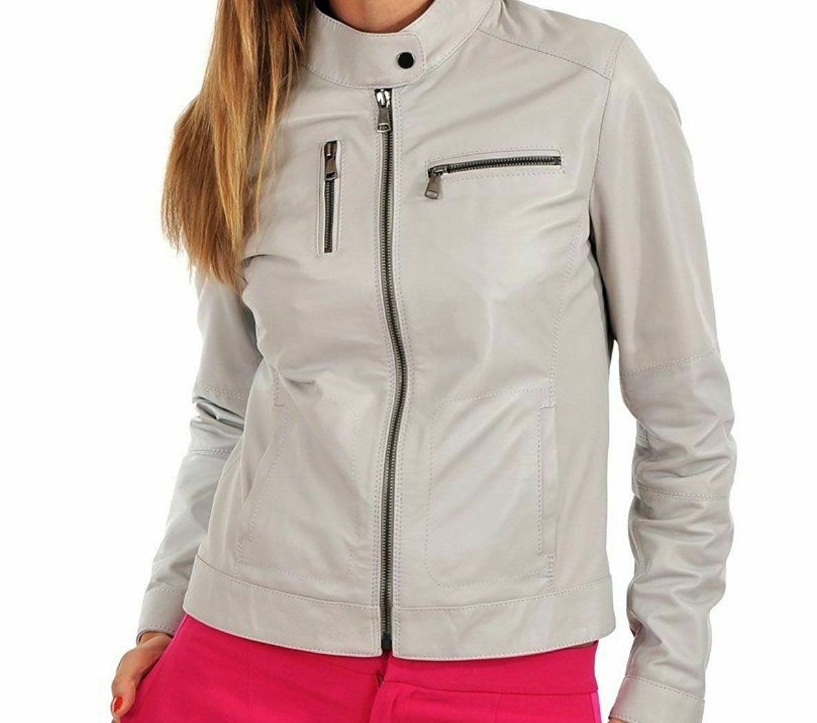 White Leather Jacket For women Biker 100% Genuine Lambskin Leather
