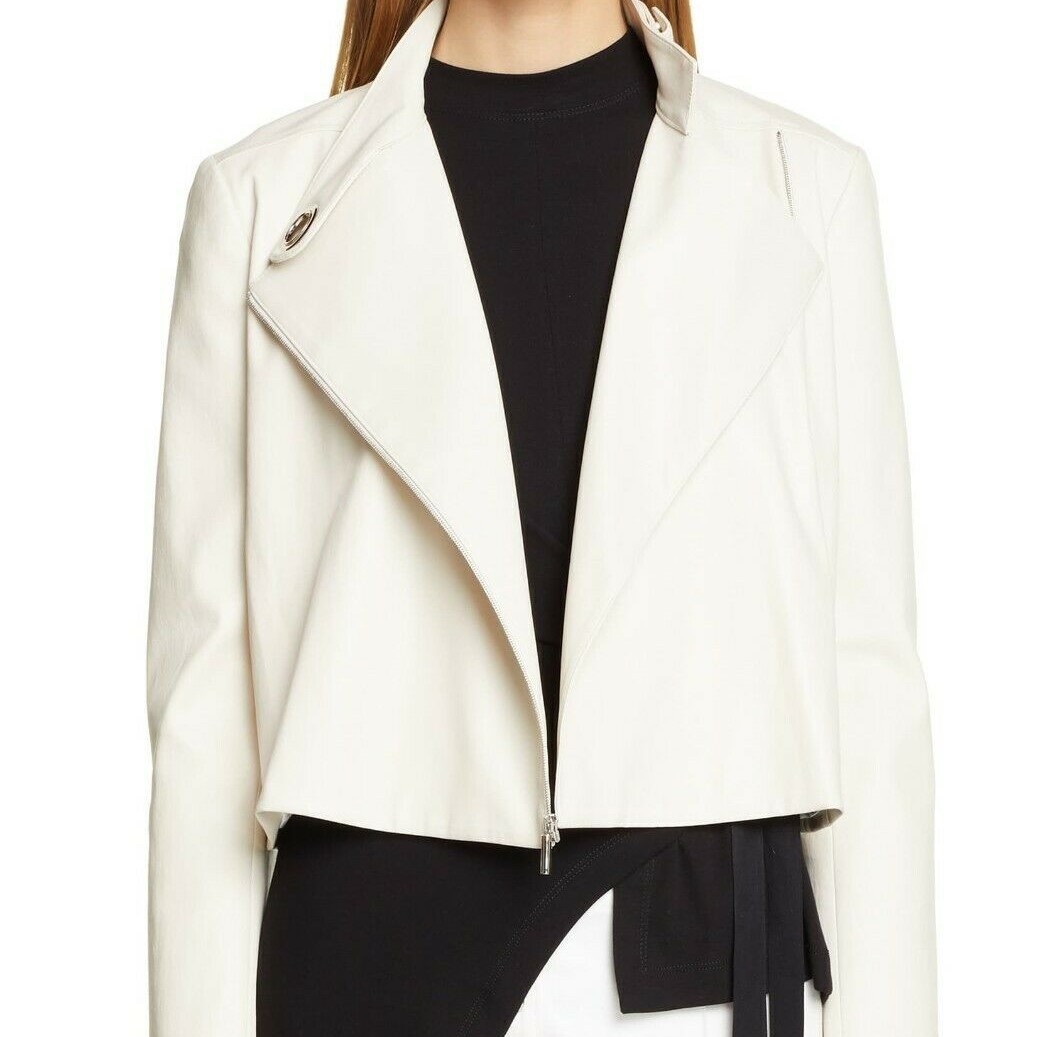 White Leather Jacket women Biker 100% Genuine Real Lambskin Leather