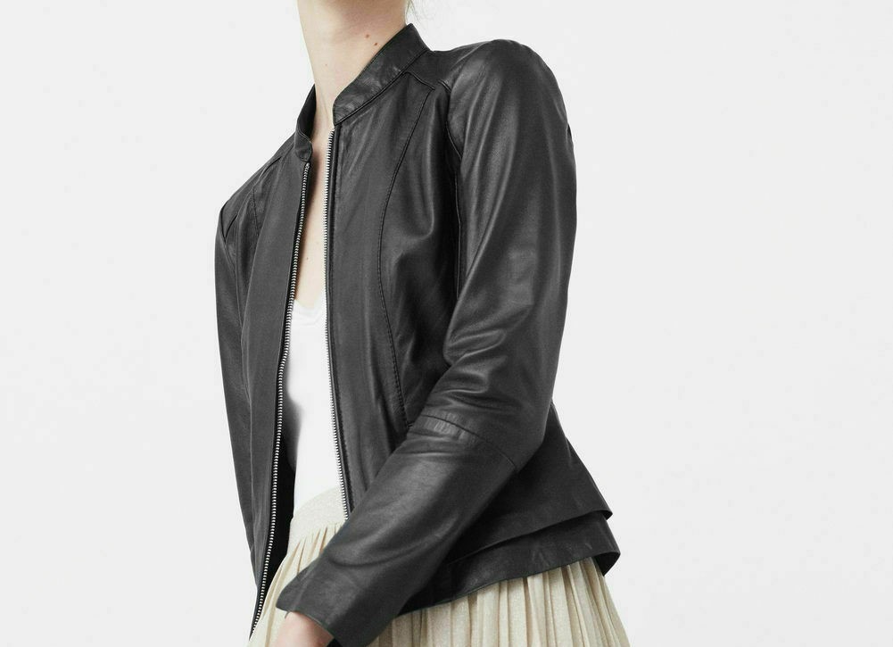 Basic Women's Authentic Lambskin Leather Jacket Biker Black Handmade Luxury Coat
