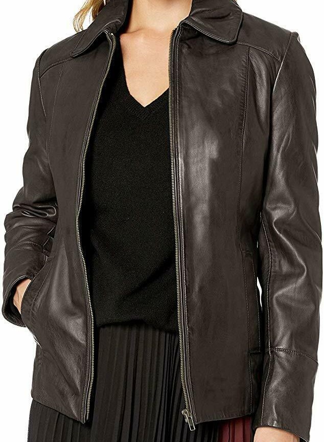 New Women's Genuine Sheepskin Leather Jacket Biker Brown Stylish Outwear Coat