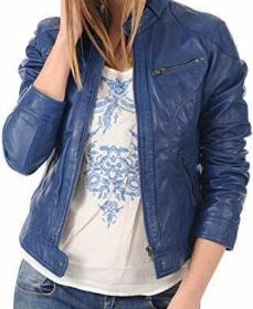 New Women's Fashion Original Lambskin Biker Blue Slim Fit Jacket