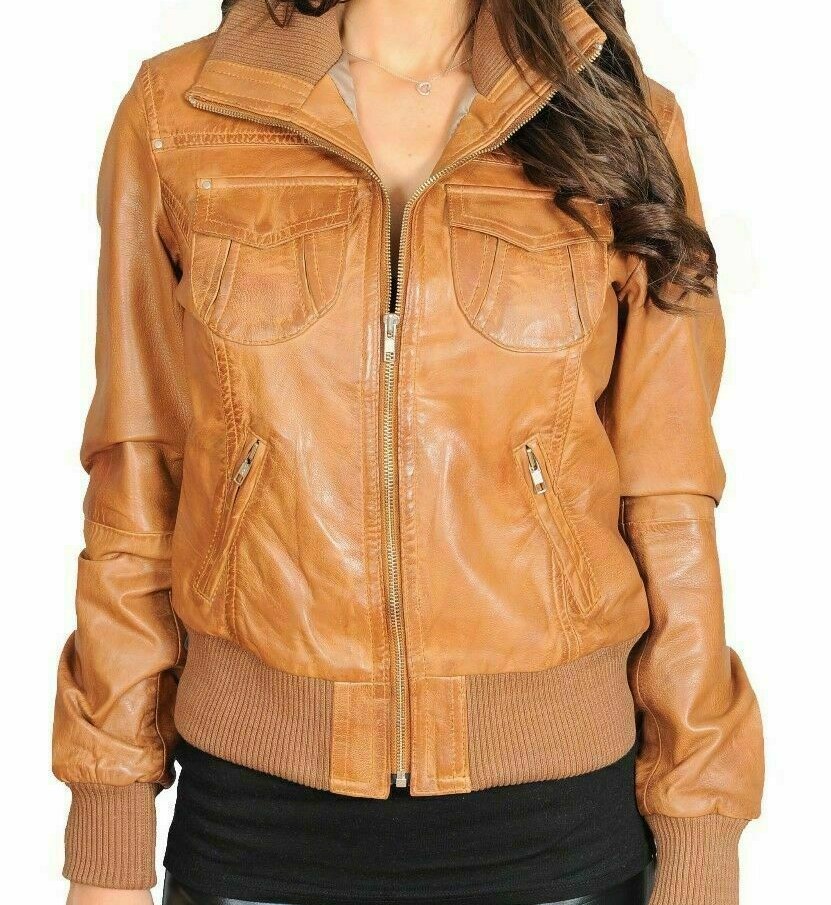 URBAN New Women's Sheepskin 100% Leather Jacket Biker Slim Fit Tan Coat Collared