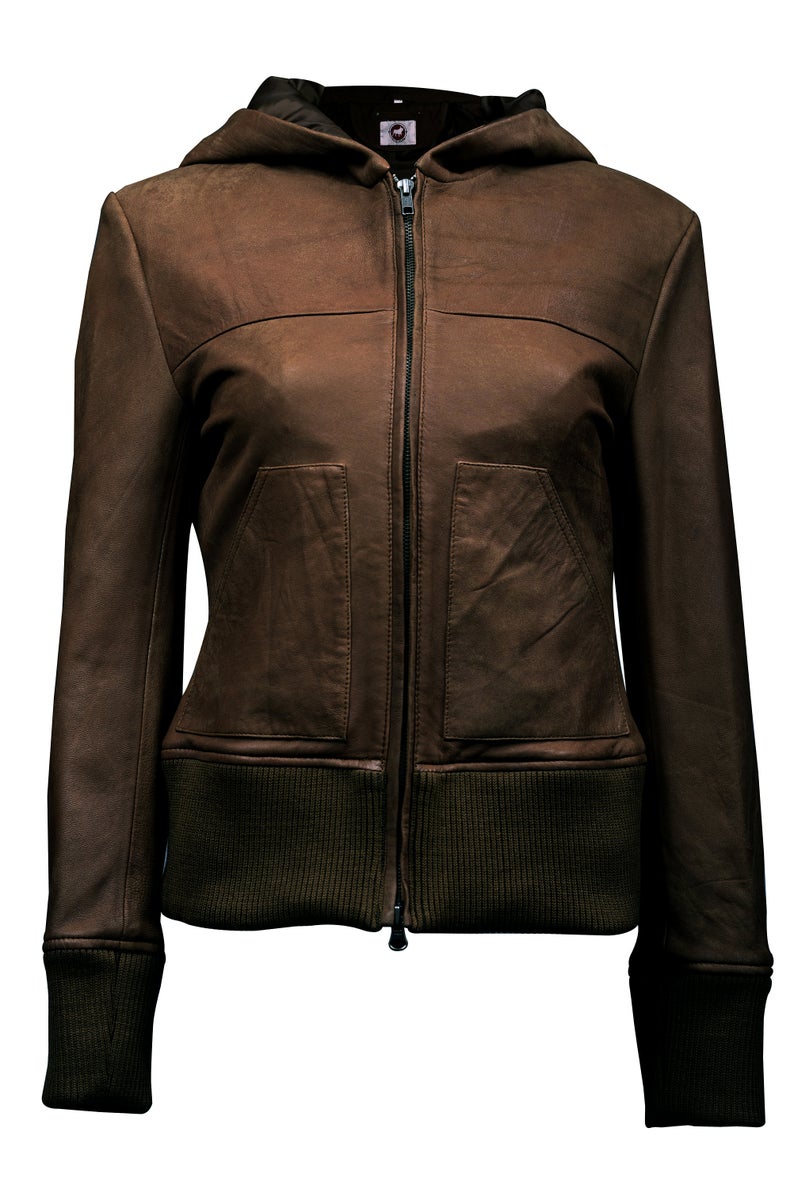 Black Brown and Tan Bomber Hooded Real Leather Jacket Women