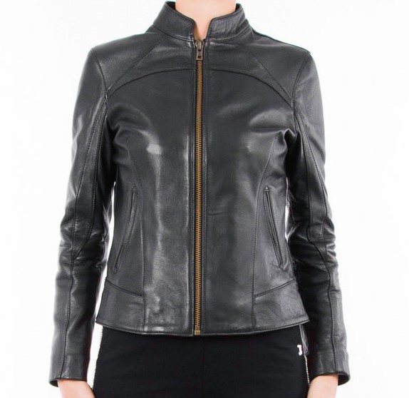 Women soft genuine lambskin leather jacket slim fit color Black brass zipper