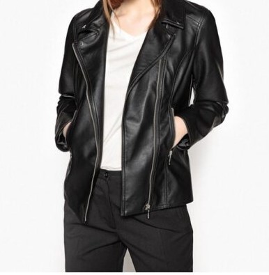 Women Fashion Biker Style Leather Jacket V Neck Leather Jackets