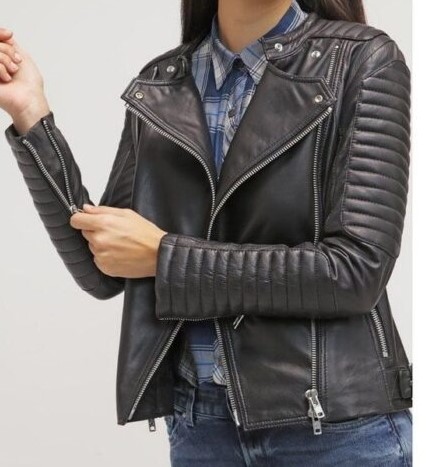 Women Fashion Black Leather Jacket , Lambskin Biker Style Jacket For Women’s